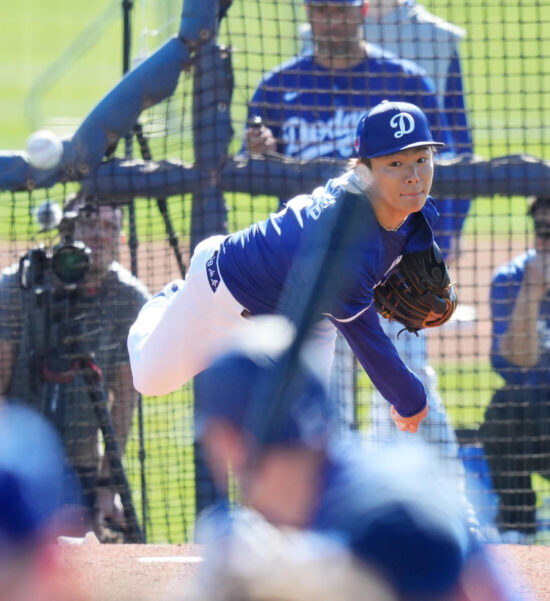 ドジャース山本由伸投手(25)が17日(日本時間18日)、今キャンプ初のライブBP(実戦形式の打撃練習)に登板した。ムーキー・ベッツ外野手(31)、フレディ・フリーマン内野手(34)のMVPコンビなど、主力打者6人を相手に計28球。最速は96マイル(約155キロ)を記録した。