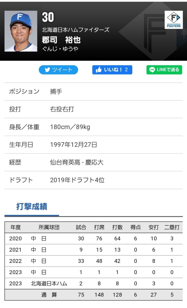 結局郡司はどこ守らせたらいいのか困る選手でそれが打撃にも影響してたからDHあるパに行ったのが正解だった