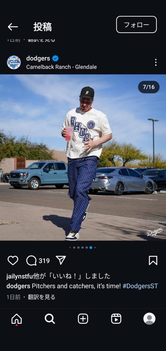 NFL、NBAの人気チームだとオシャレだったりやたら派手な選手いるけどドジャースは地味やね