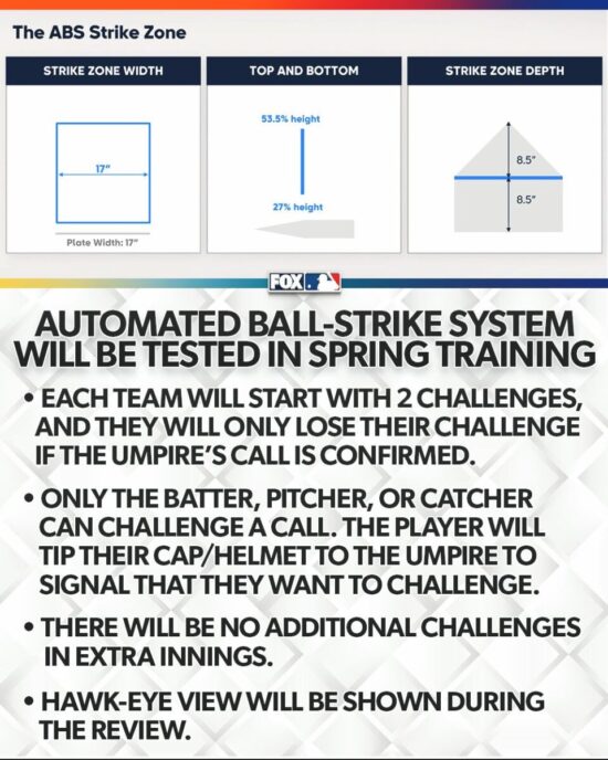 MLB公式サイトが日本時間19日、自動ボールストライクシステム(ABS)を今季一部のスプリングトレーニングの試合で導入することを報じました。