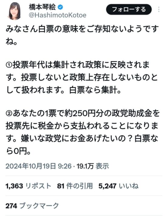 白票多いから反省しようなんて政治家いるわけないだろ