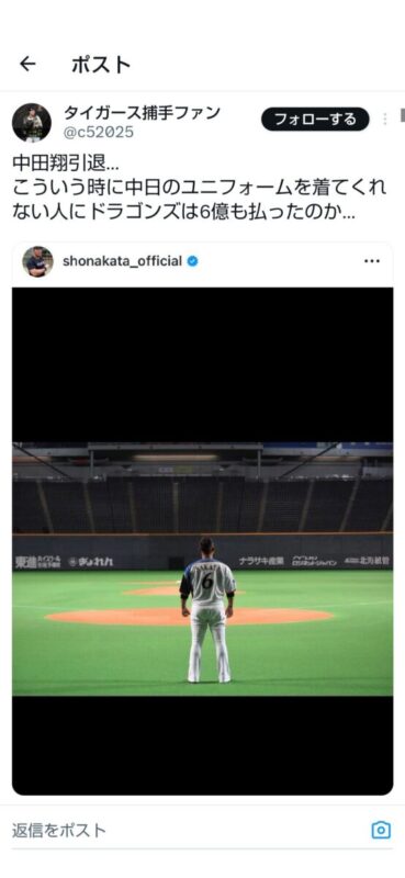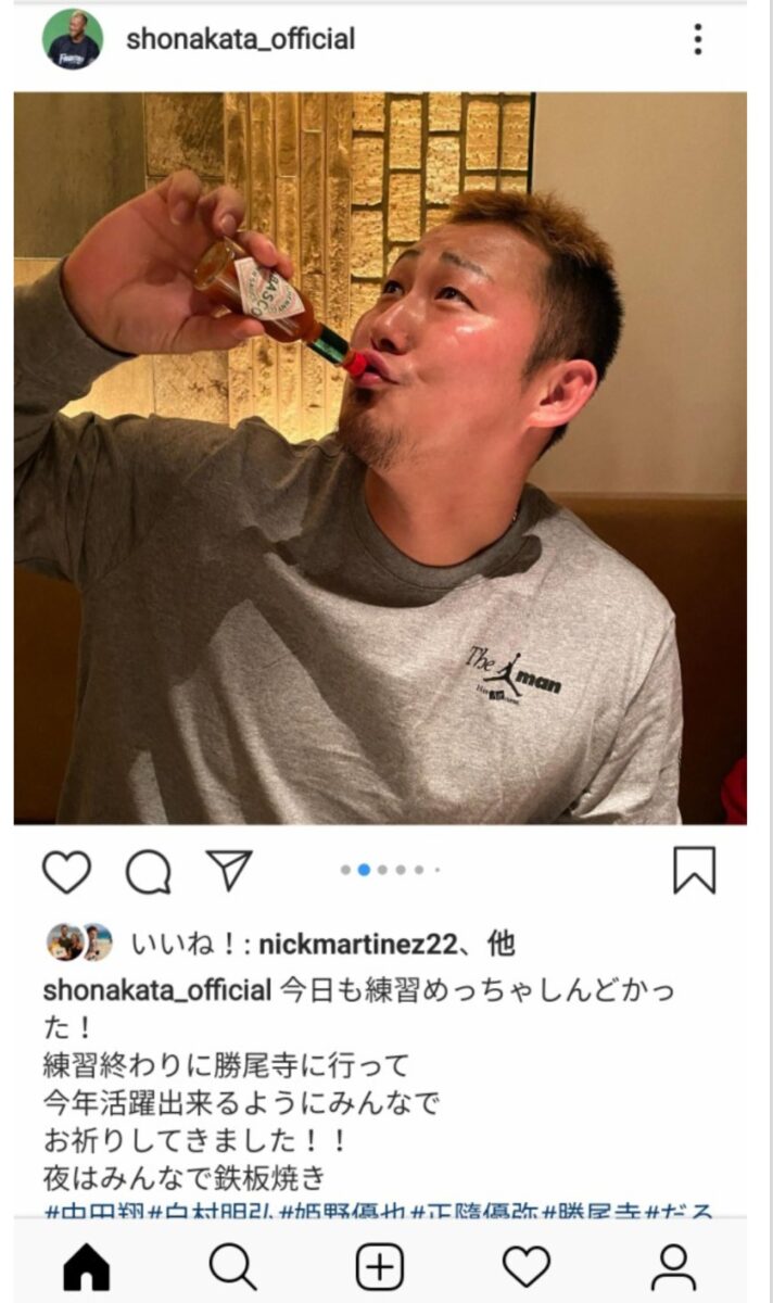 中田のインスタの最新ポスト、何で日ハムのユニフォーム姿なんだろう