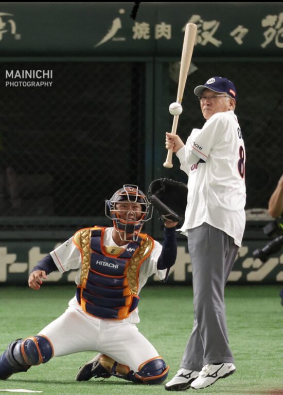 一度はグラウンドにひっくり返った小川市長だったが、自力で立ち上がってからバットを一振り。「全然大丈夫、痛くもなんともない。それより徳永社長のボールを体で受け止められてうれしかったですよ」と、笑顔で応援席に向かった。