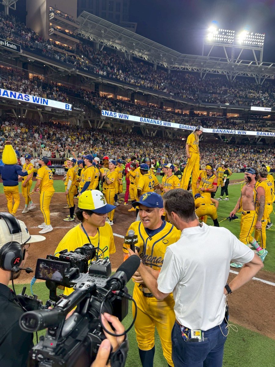 野球の本場アメリカで、「ファンファースト(ファン最優先)」を旗印に掲げるチーム「サバンナ・バナナズ」が一大旋風を巻き起こしている。打って投げて走るだけじゃなく、歌って踊って宙に舞うユニークなプレースタイルで、エンターテインメント性を重視。チケットは発足当初から全試合完売で、メジャーリーグの人気球団ドジャースやヤンキースの試合よりも入手が困難だ。交流サイト(SNS)での存在感も際立ち、TikTok(ティックトック)のフォロワー数は今や1千万人超。「スポーツ界最高のショー」とも称され、野球に関心が薄かった層からも大きな支持を集めている。(共同通信ロサンゼルス支局=益吉数正)