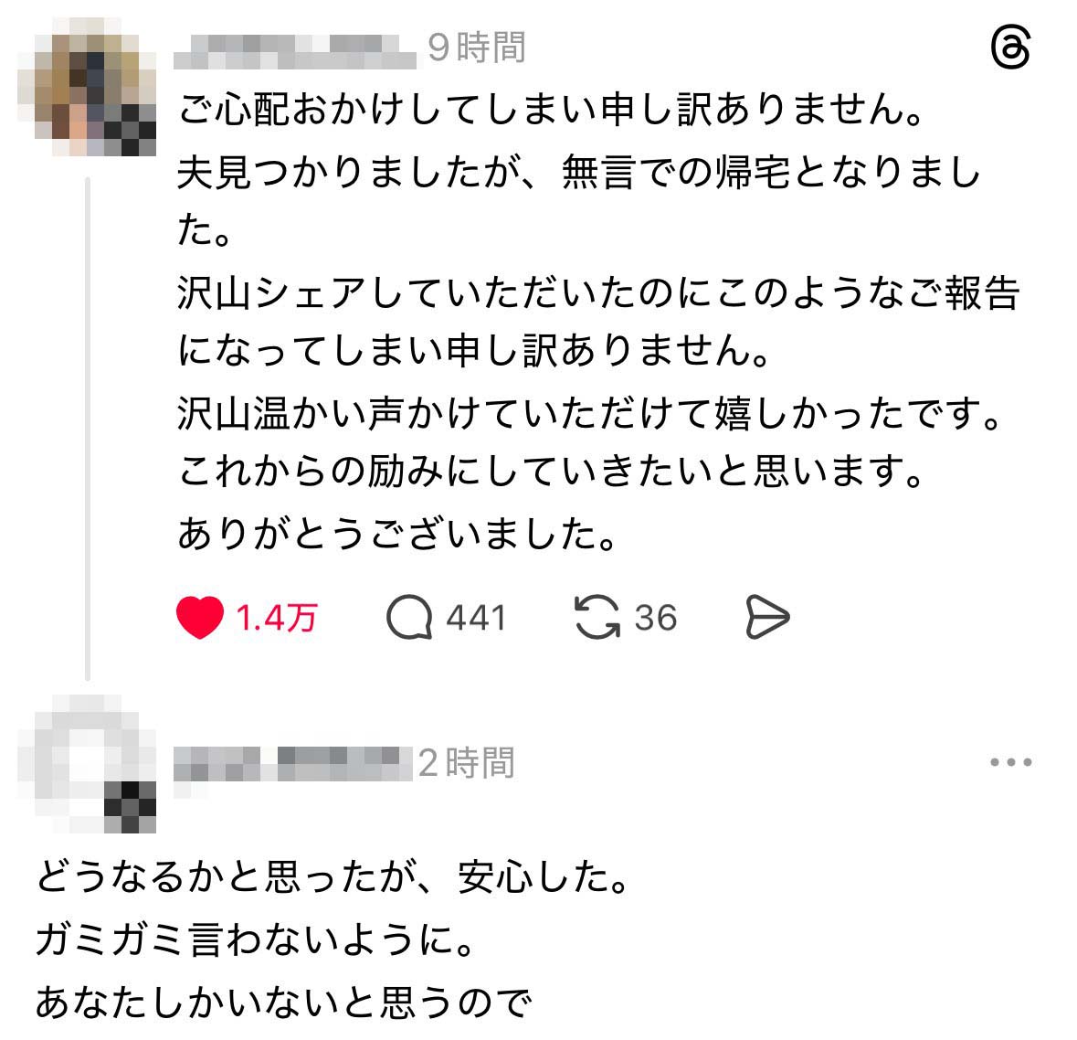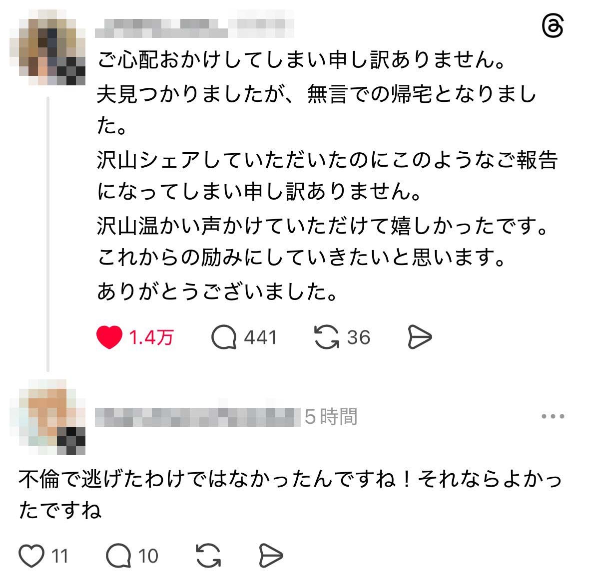 投稿主「夫が無言の帰宅となりました…」 スレッズ民「安心した」「よかったですね」
