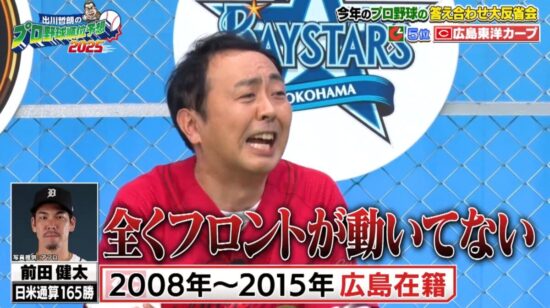 12月26日に放送されたテレビ東京系「出川哲朗のプロ野球順位予想2025 答え合わせ大反省会」で、広島カープの大ファン芸人であるアンガールズ・田中卓志の“魂の叫び”が話題となっている。