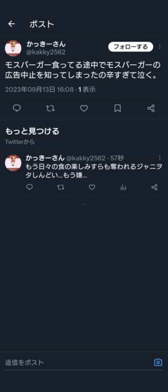 モスバーガーはSnow Manのオタクから金だけ引き出して撤退かよ