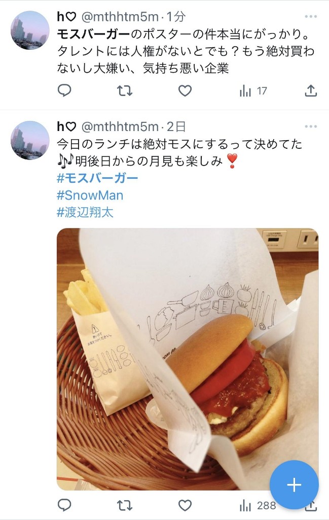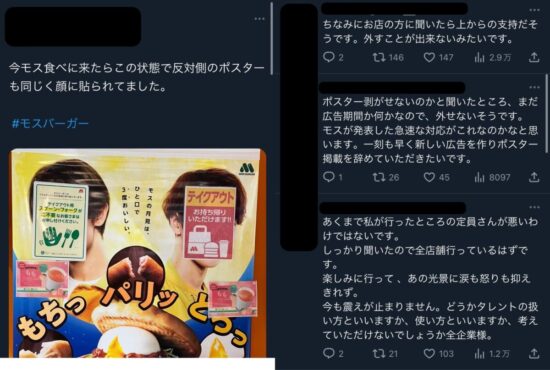 モスバーガーのジャニーズ継続起用に賛否「ご恩は忘れない」「不買します」