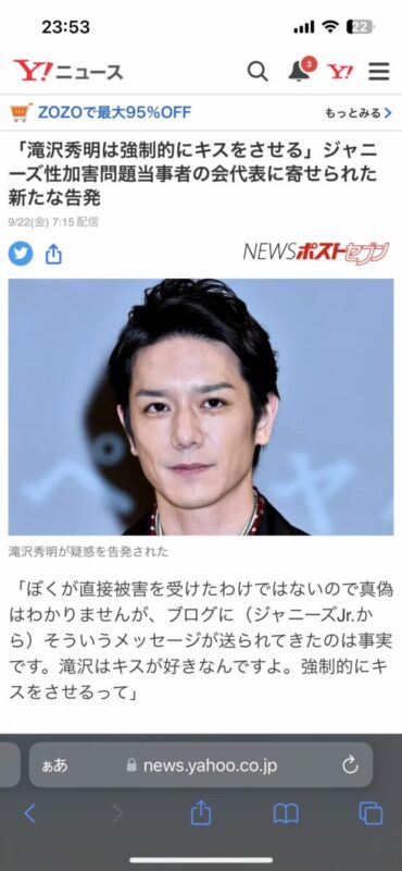 「滝沢秀明は強制的にキスをさせる」 ジャニーズ性加害問題当事者の会代表が新たな疑惑を告発