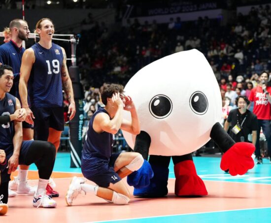 全セットで10点以上の差をつける完勝だったが、試合後も、その「強さ」を見せつけた。喜びのあまり、米国代表のテーラー・アベリルはマスコットキャラクターのバボちゃんを上から体重を押しつけるように抱きしめた。