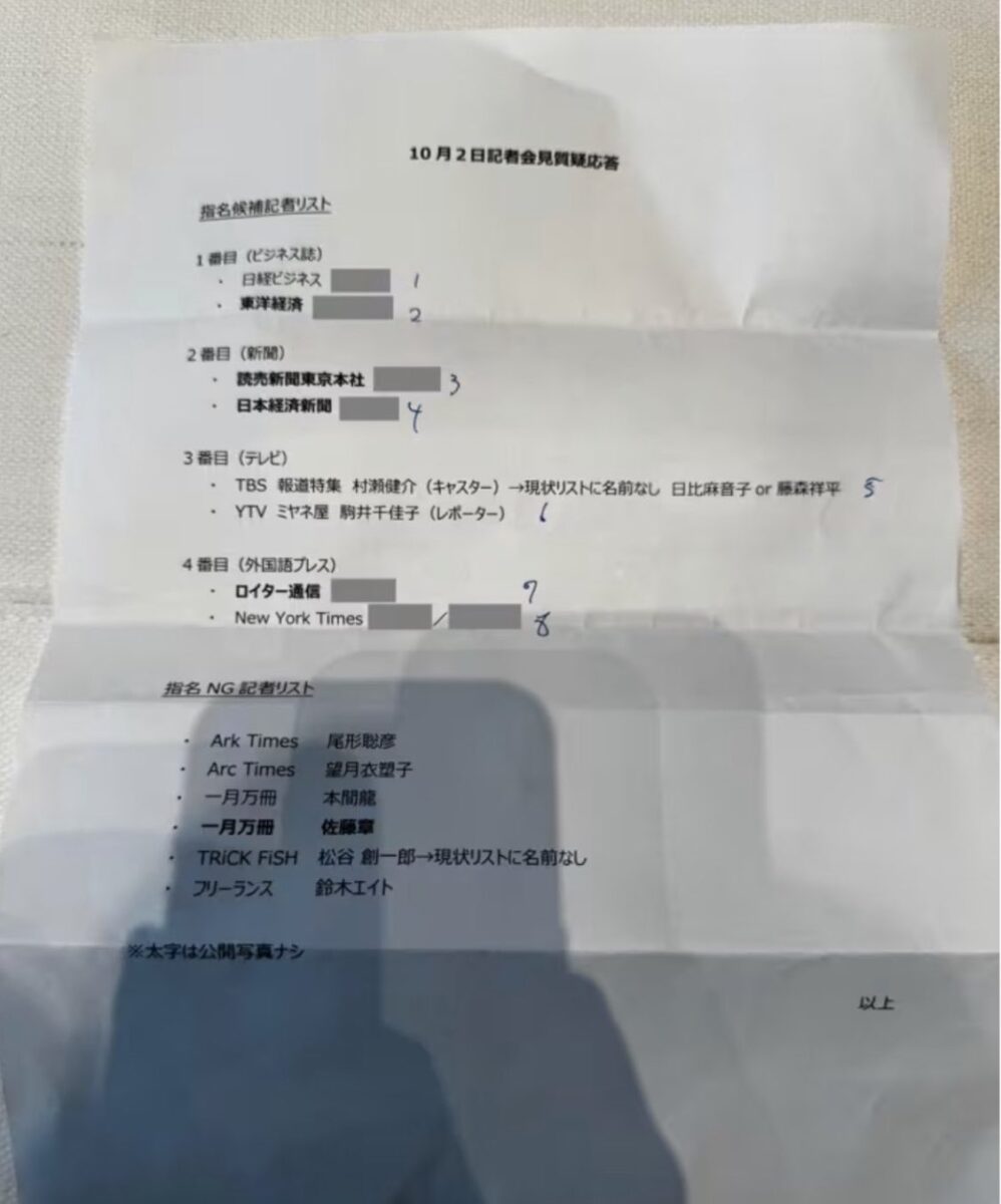 ※ (2ページ目)スクープ!ジャニーズ会見で使用された「指名候補&NGリスト」現物入手&全社名公開! | FRIDAYデジタル